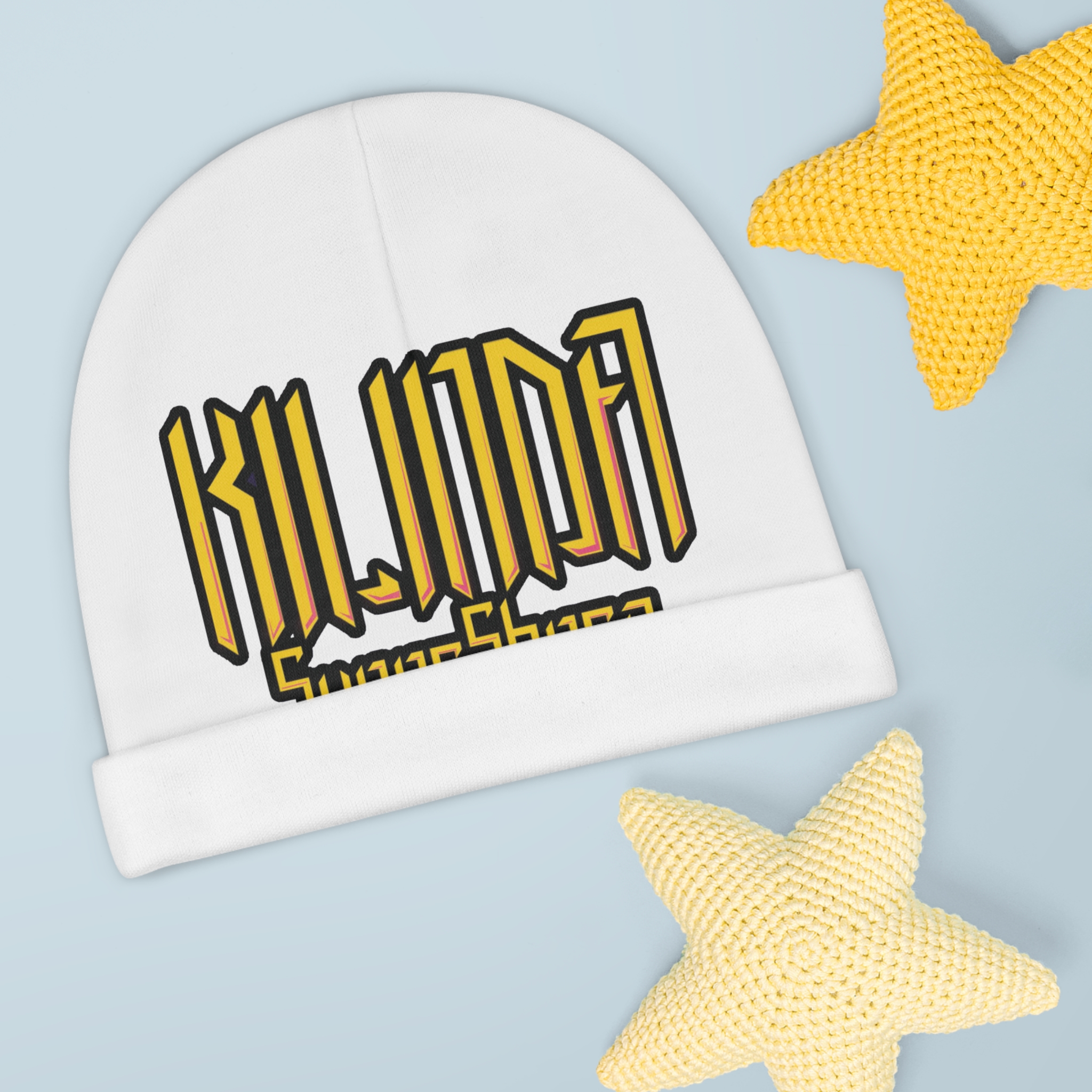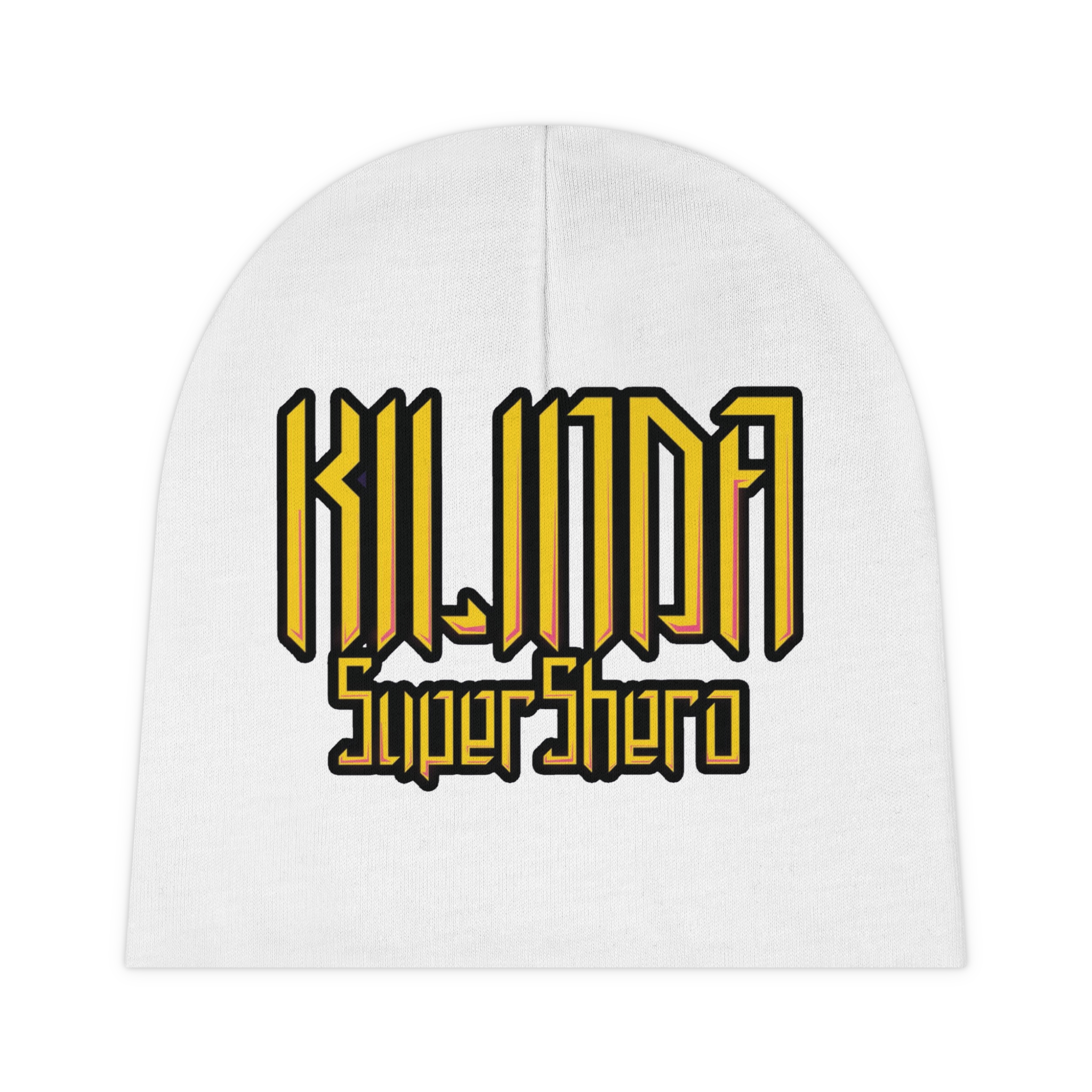 The custom KILINDA SuperShero baby beanie hat is an ideal inclusion for colder months. The 100% polyester build is designed with comfort and printability in mind. Sized for infants up to roughly 6 months old, the custom baby beanie can be printed on both sides: front and back.