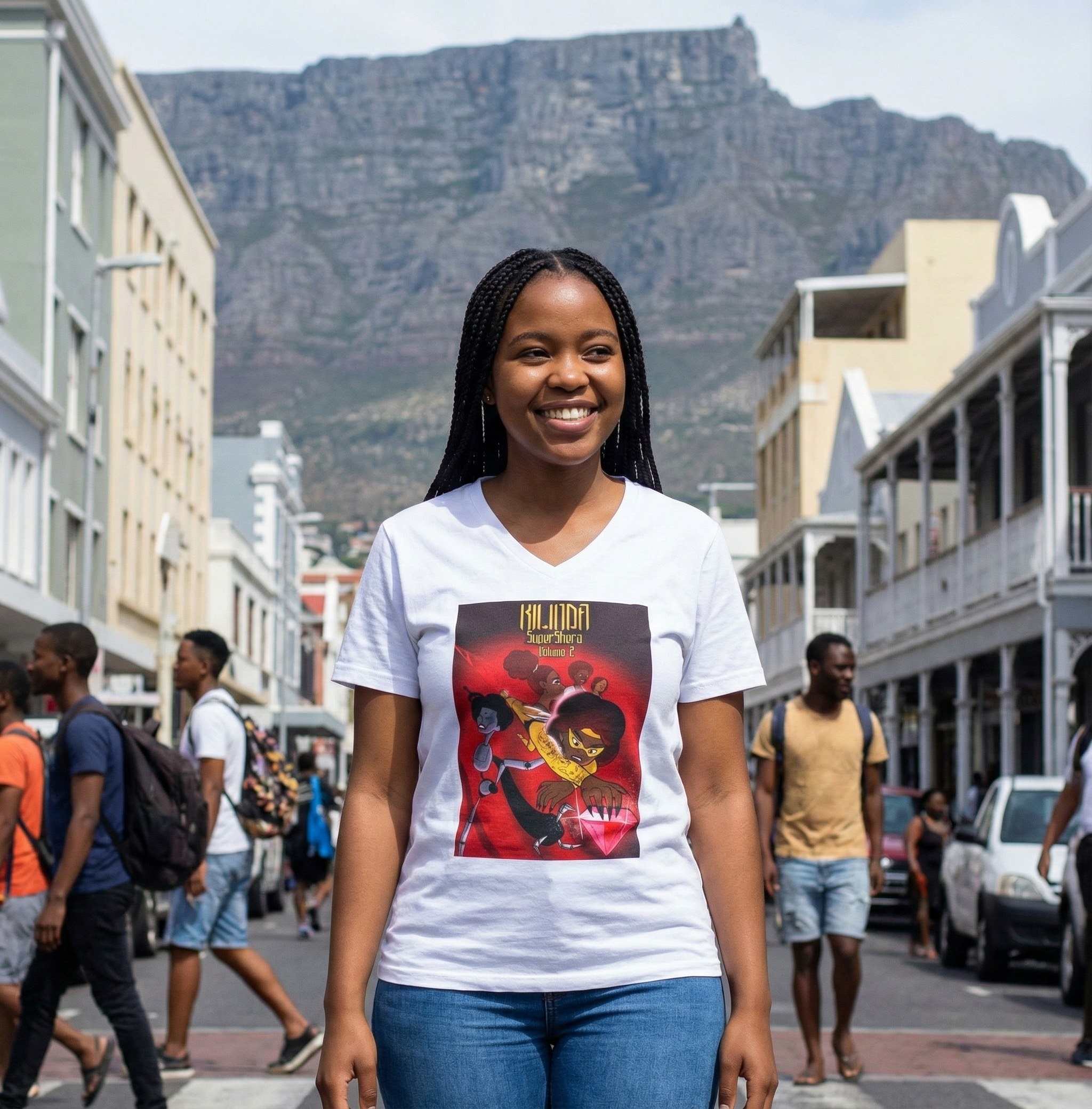Elevate your wardrobe with this trendy KILINDA SuperShero Unisex Jersey Short Sleeve V-Neck Tee. Crafted from lightweight, breathable cotton, it provides an effortlessly comfortable fit, perfect for all-day wear. The stylish V-neckline and retail fit offer a modern silhouette that seamlessly transitions from casual outings to semi-formal events. Ideal for those who cherish individuality, this tee is perfect for self-expression during holidays, casual gatherings, or celebrations. Embrace your unique style and make a statement while enjoying the versatility this tee brings to your life. It appeals to fashion enthusiasts and anyone looking for both comfort and style in their everyday attire.