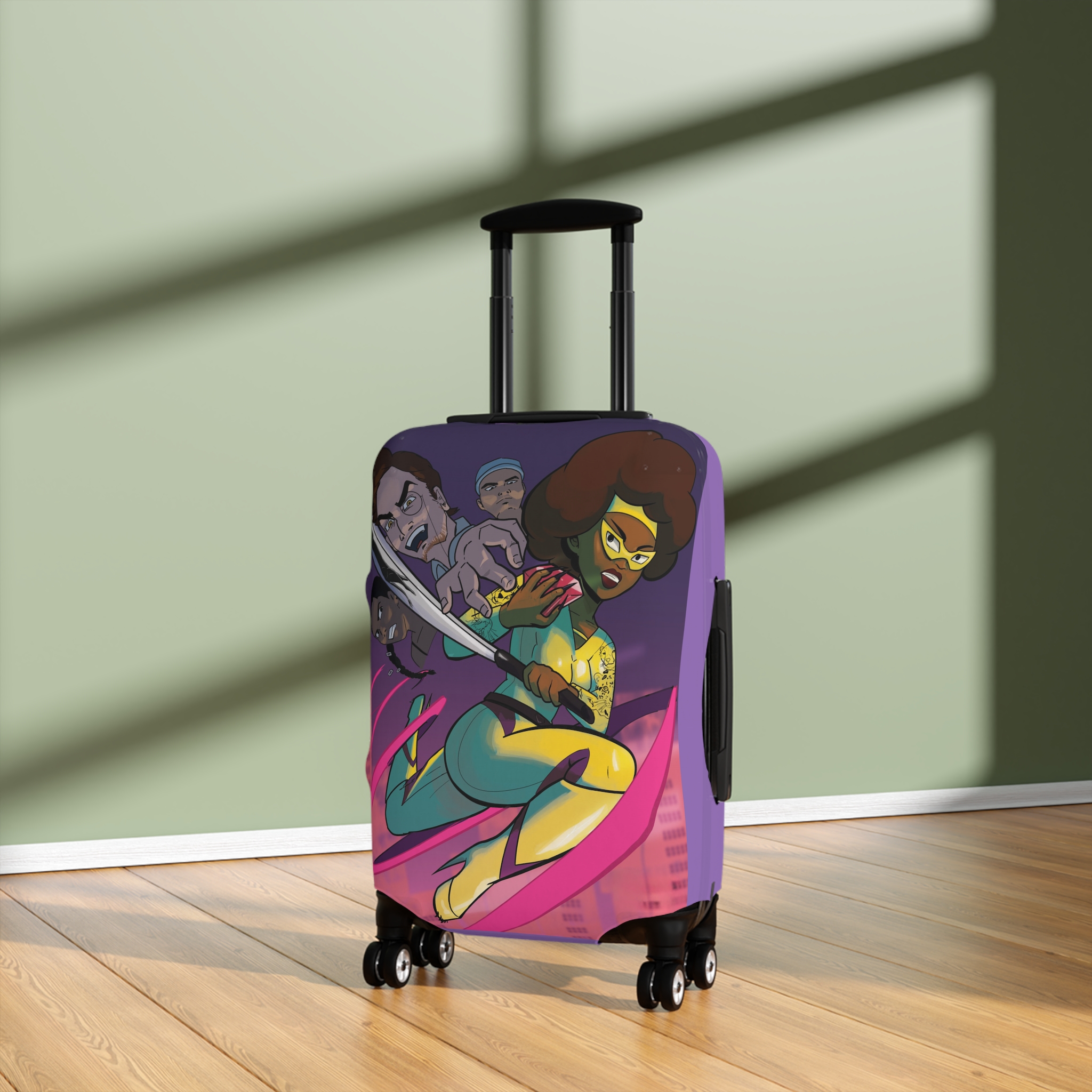 Travel in style with this KILINDA SuperShero elastic polyester-spandex luggage cover! Protect luggage from nasty scratches and accidental swaps at the baggage carousel. These covers slide on quickly and feature multiple slits on the left side for easy access to the handles. Get Yours Now!