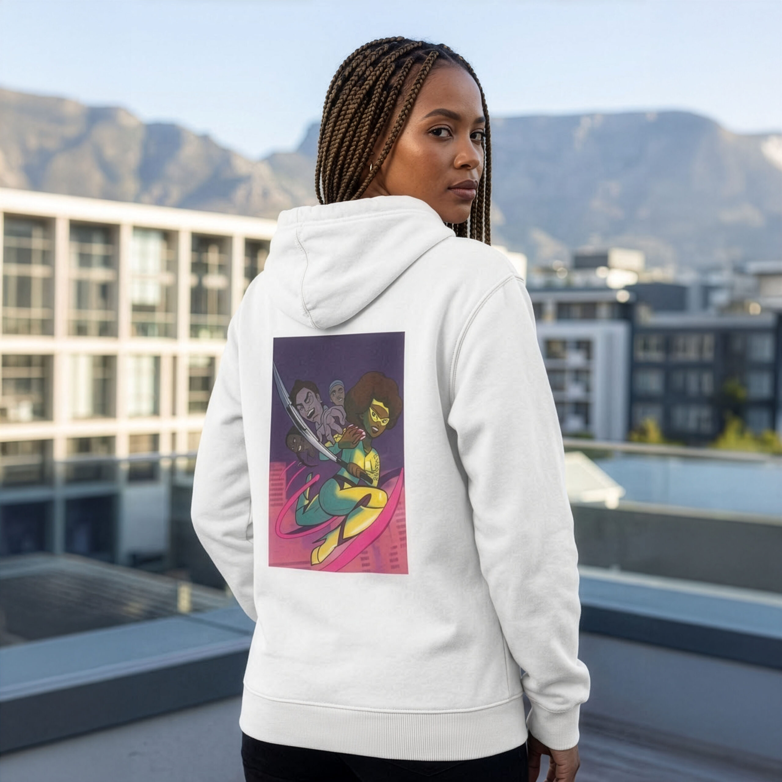 Stay cozy and stylish with the KILINDA SuperShero Women’s Pullover Hoodie Sweatshirt, featuring a vibrant graphic of KILINDA. Made from 100% ring-spun US cotton, this hoodie combines ultimate softness with durability, making it perfect for everyday wear. The jersey-lined hood and natural-colored flatcord add a touch of comfort, while the rolled-forward shoulders ensure a relaxed fit. As a product that adheres to eco-friendly standards, it’s crafted with OEKO-TEX certified low-impact dyes, supporting a sustainable and environmentally responsible choice. Proudly wear your KILINDA spirit while knowing your hoodie is as kind to the planet as it is to you.