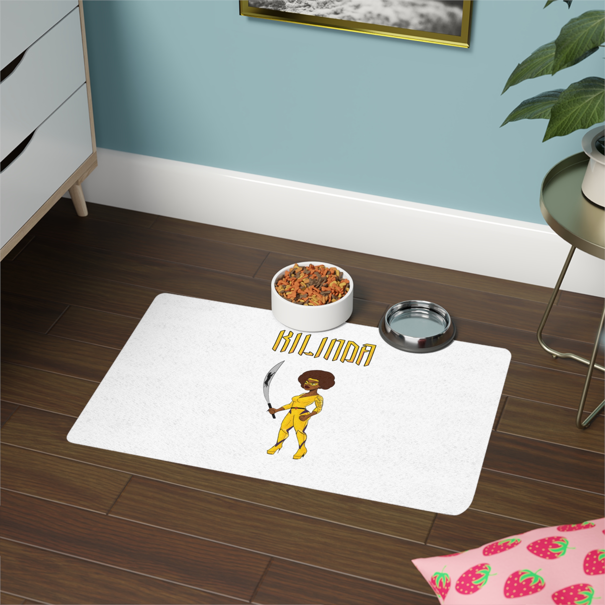 Created for minimizing mess, this KILINDA SuperShero personalized pet food mat is as practical as it is stylish. Made with a non-slip rubber base, this pet feeding mat stays put even when the clumsiest puppers are having their meal. Each mat comes in a rectangle shape, is thick, and is perfect for both dogs and cats.